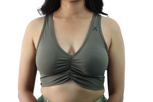 Ruching Sports Bra - Olive Green/Black/Mauve