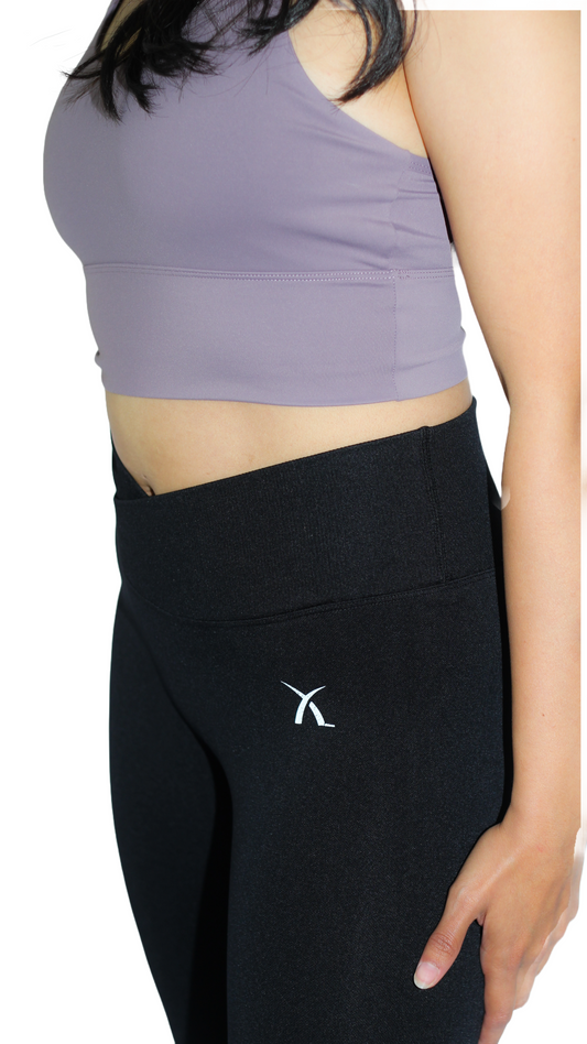 V Shape Flare Leggings Black/Perry Blue/Lavender