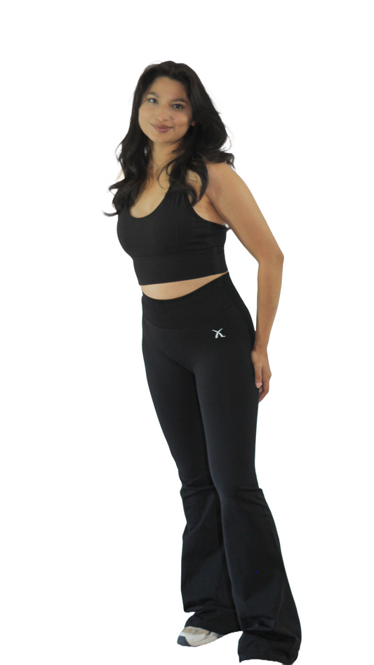 Seamless High Waisted Flare Leggings - Black/Midnight Blue
